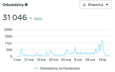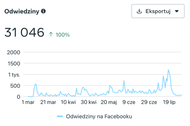 5 przeprowadzonych kampanii reklamowych z średnim wynikiem CPC 0,10 zł / zasięg 70 000 aktywnych kont,